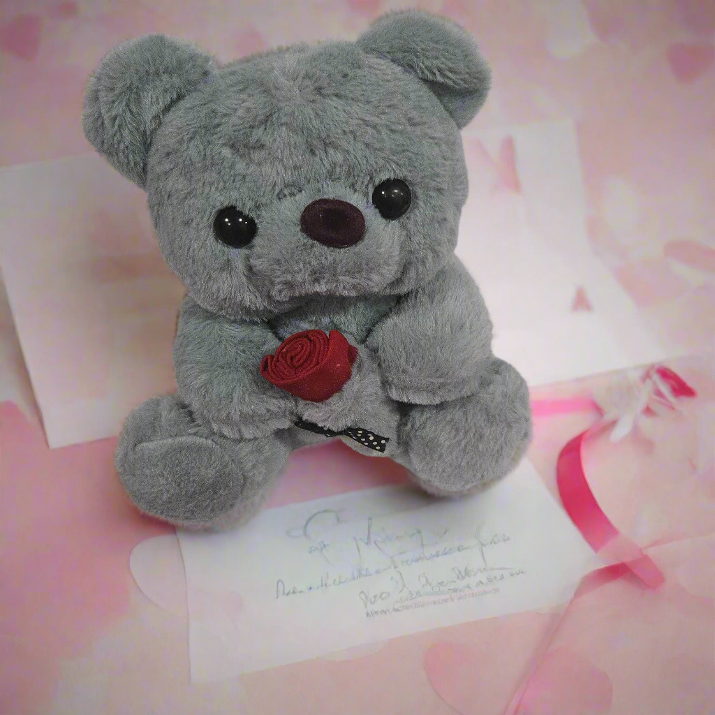 "Get ready to bear hug your loved ones with this adorable teddy holding a rose. Perfect for Valentine's Day, birthdays, or just because. This cute teddy is sure to bring a smile to anyone's face.
